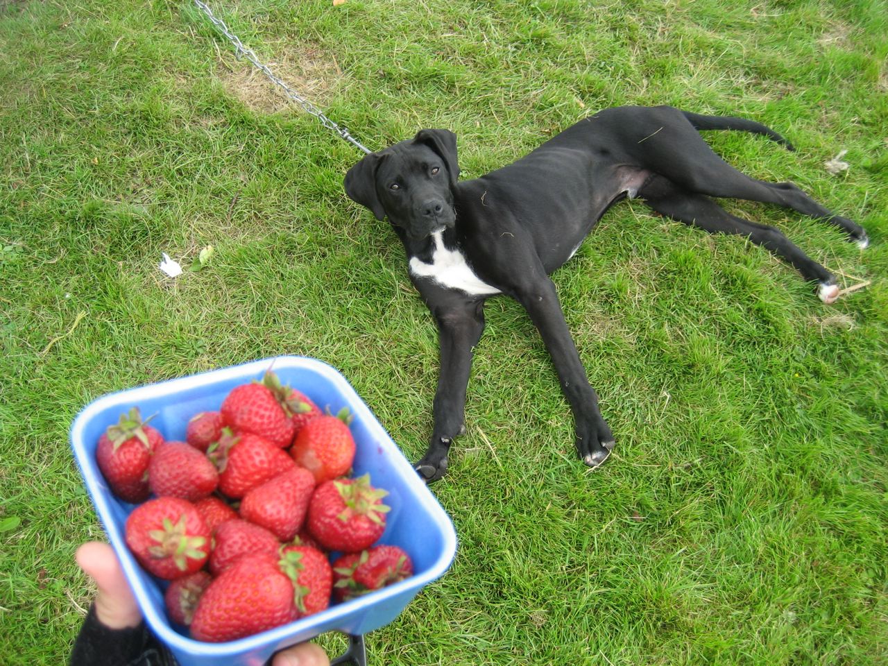 A fast, well-deserved descent brings us back to flat country roads with a few effortless hills. Steve and I ride into Mission at a comfortable pace, and from there we follow Highway 7 and can finally put away the maps. Then I spot a roadside strawberry stand outside of Dewdney that looks too delicious to pass up. I chat with the owner for a few minutes and meet her dog, Spiker.