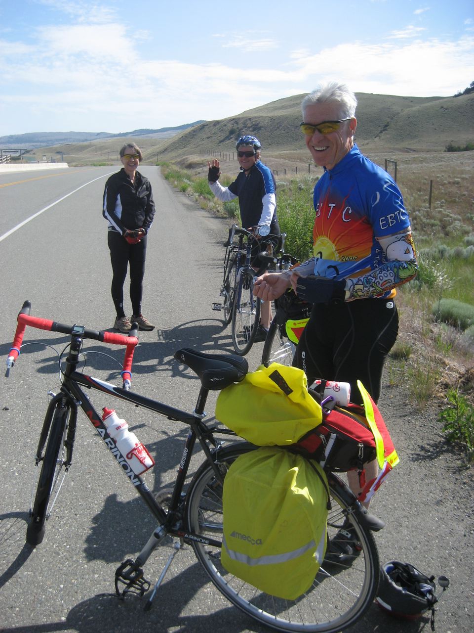 I sign the guestbook and get back on the bike with 78 km still to go. A few minutes later I see Mike, Marshall and Bernice on the side of the road removing extra layers as the temperature starts rising. It feels like it’s going to be a hot day.