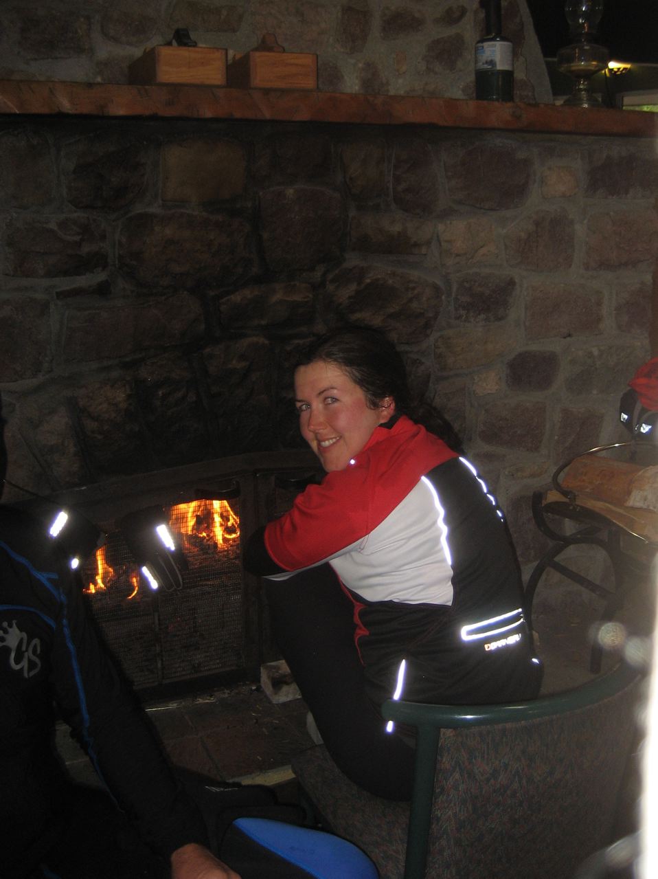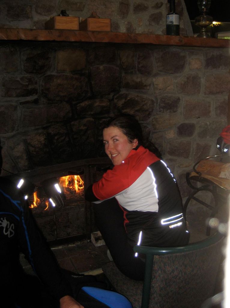 I am huddled by the fire for an hour and a half before I get back on the bike. The cashier at the gift shop provides me with plastic bags for my feet, and I buy a wool hat and mittens since there’s a good chance I’ll need them tonight.