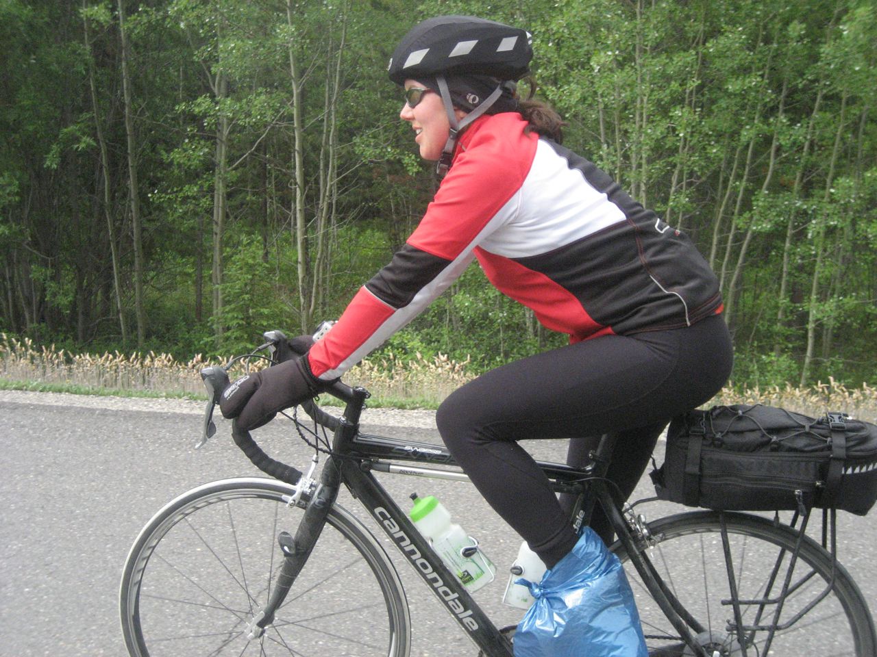 The wet roads continue all the way to our first food stop at 48 km. From there, it is mostly flat or downhill until Bow Pass, a steep 7 km climb that seems to last forever.