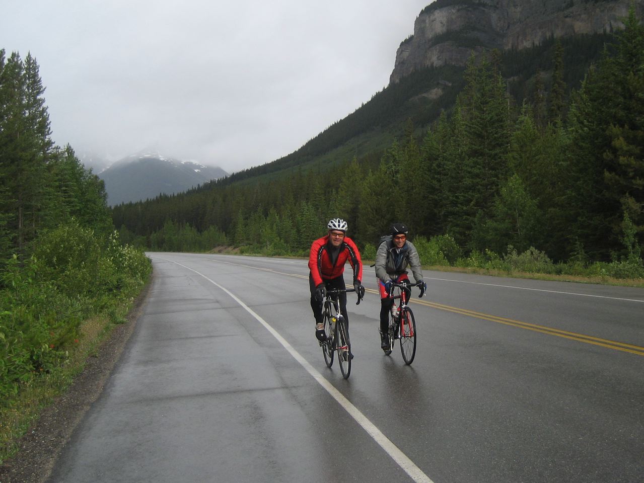 The last 35 km into camp are fast and mostly downhill. About 5 km from the end I hear another car horn, this time from my brother Dave driving in the other direction. We meet up at the campsite a little later and join the rest of the Calgary clan at Lake Louise.