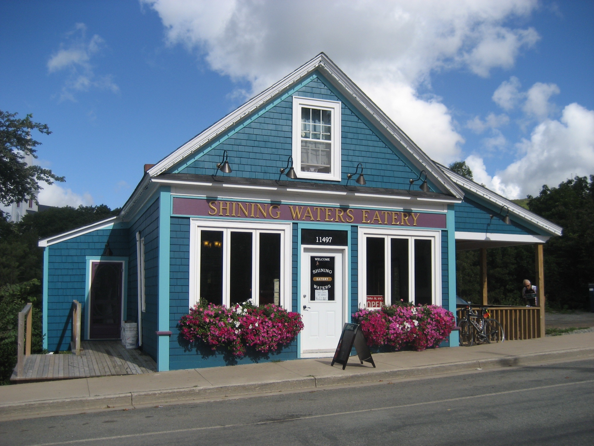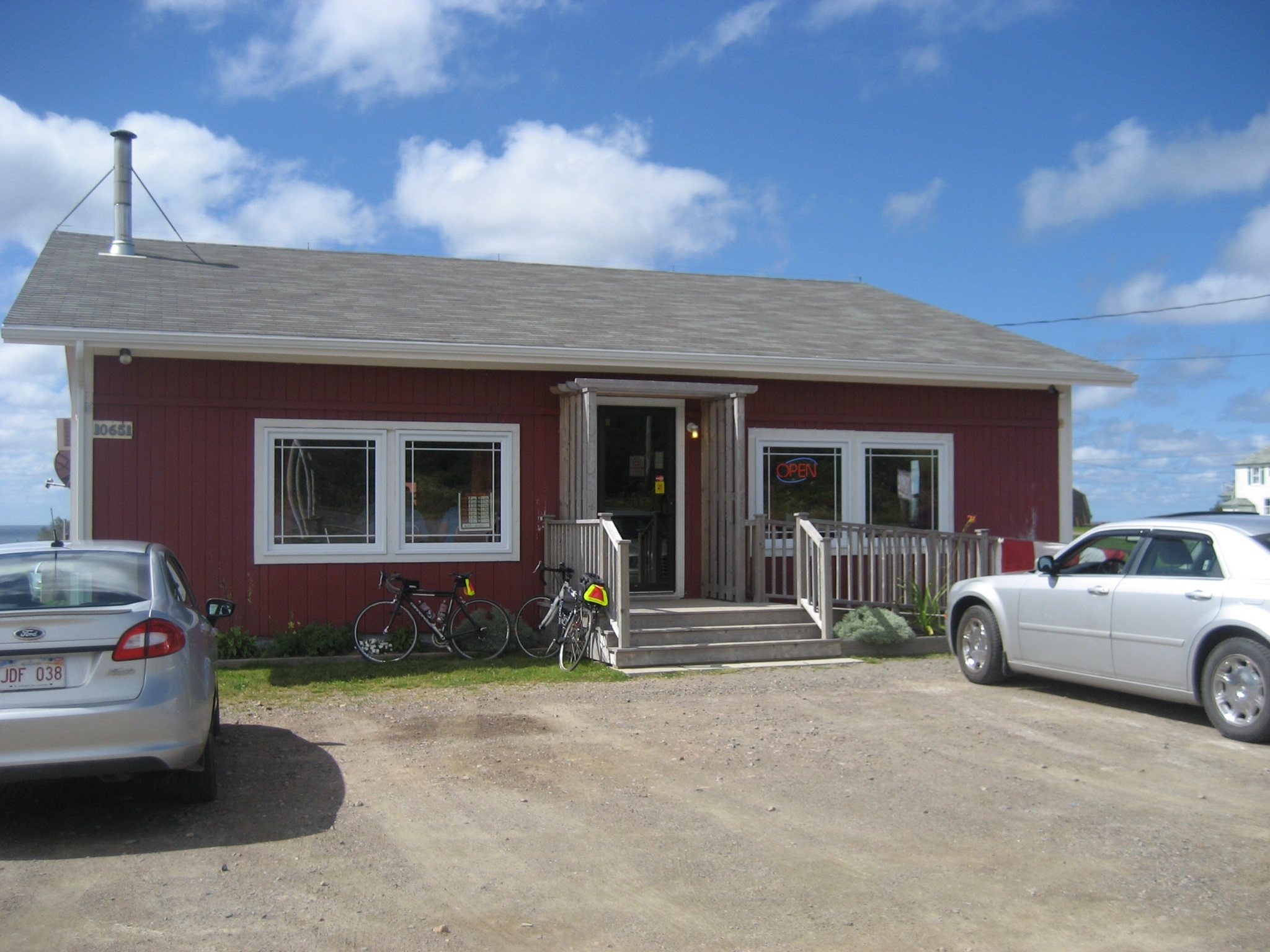 The next town on the map is Mabou at 80 km, so we plod on. It’s a struggle to make it there with a headwind that won’t let up and hills around every corner. By the time we get to Shining Waters Eatery, we’re well overdue for a break.
