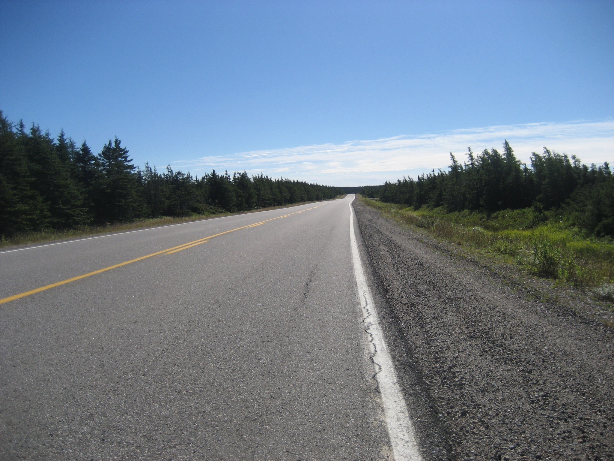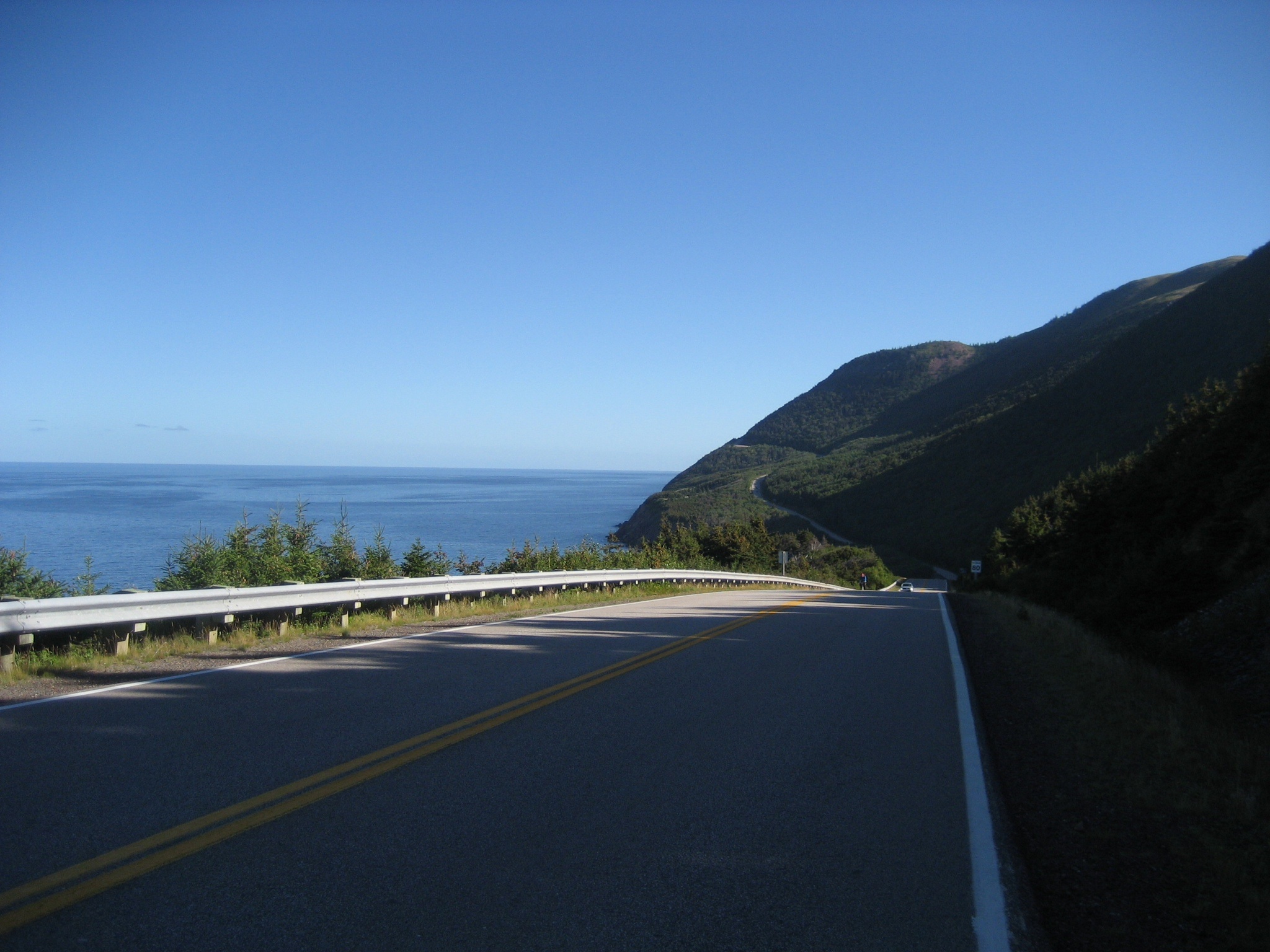 Cape Breton Highlands National Park is cold and damp this morning, the kind of see-your-breath cold that calls for a late start. I’m the last one to hit the road at 8:40.