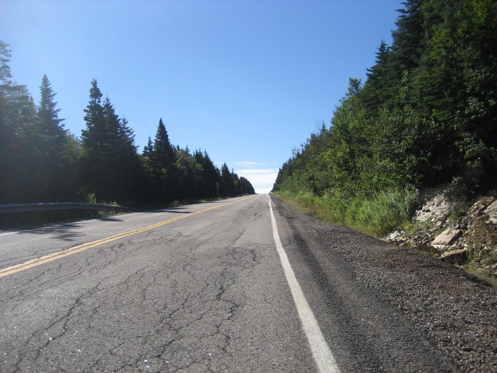 Just 11 km in, I come to the first major climb of the day: French Mountain at 455 metres. It goes on for 5 km with one switchback after another, and then it flattens out nicely at the top.