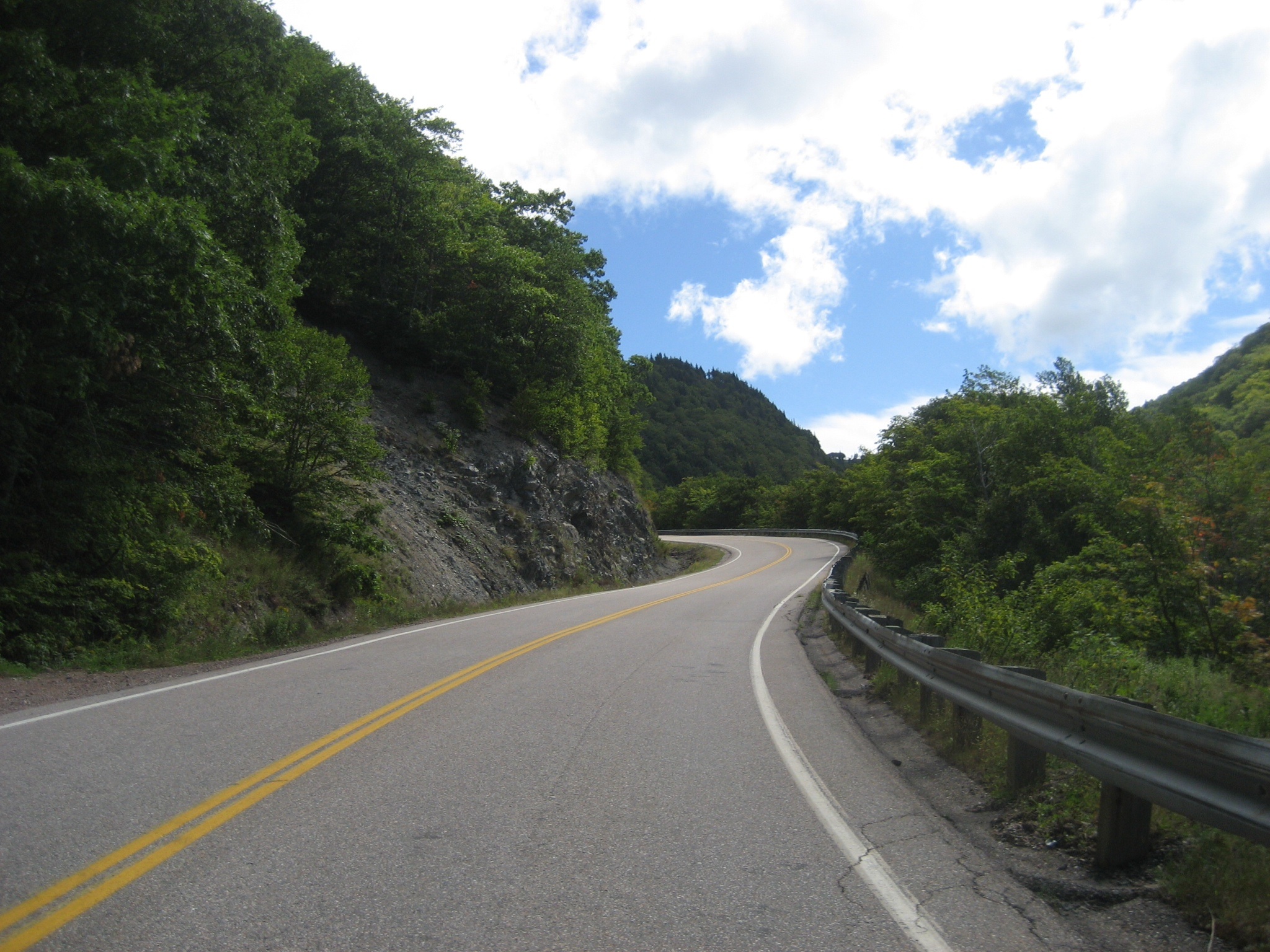 Mackenzie Mountain comes next with a summit of 372 metres. Since we’re already so high, the climb is barely noticeable but the descent sure is! With so many dangerous turns I do my best to keep my speed under 65 km/h. I can smell the rubber from my brake pads on every curve.