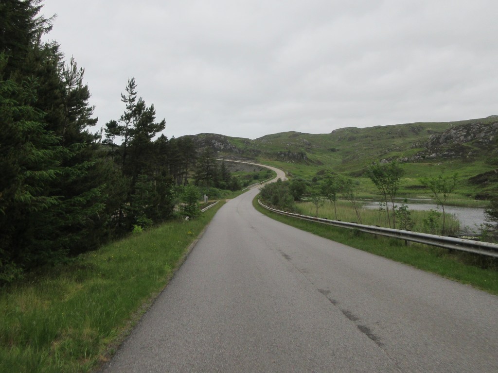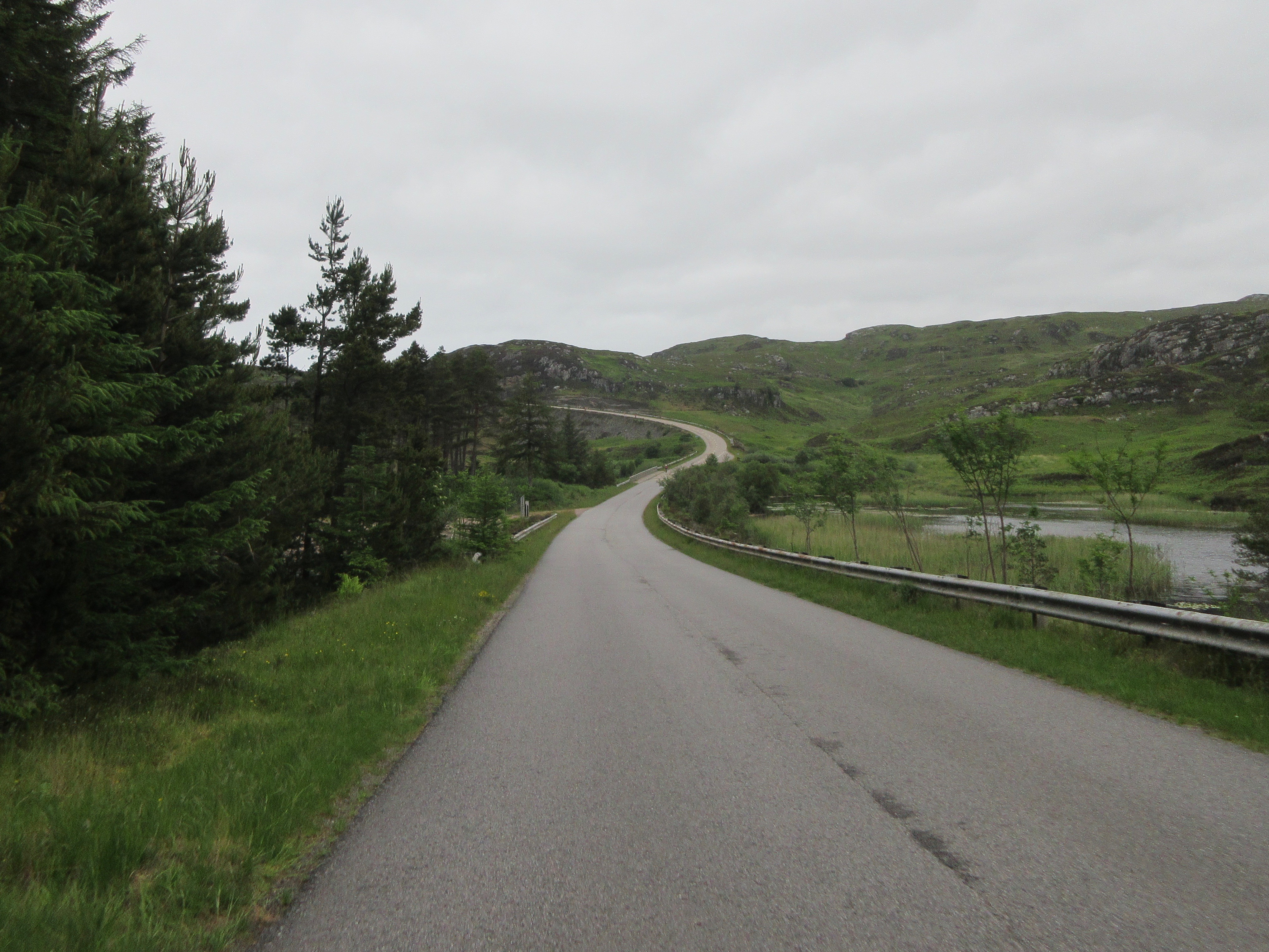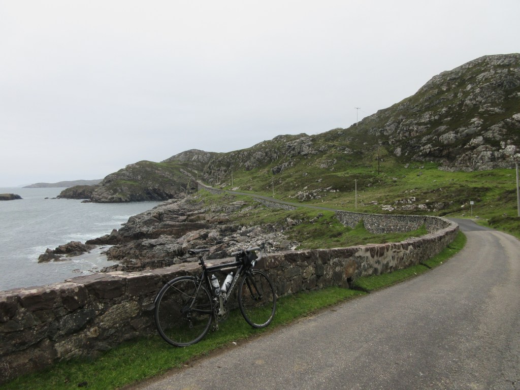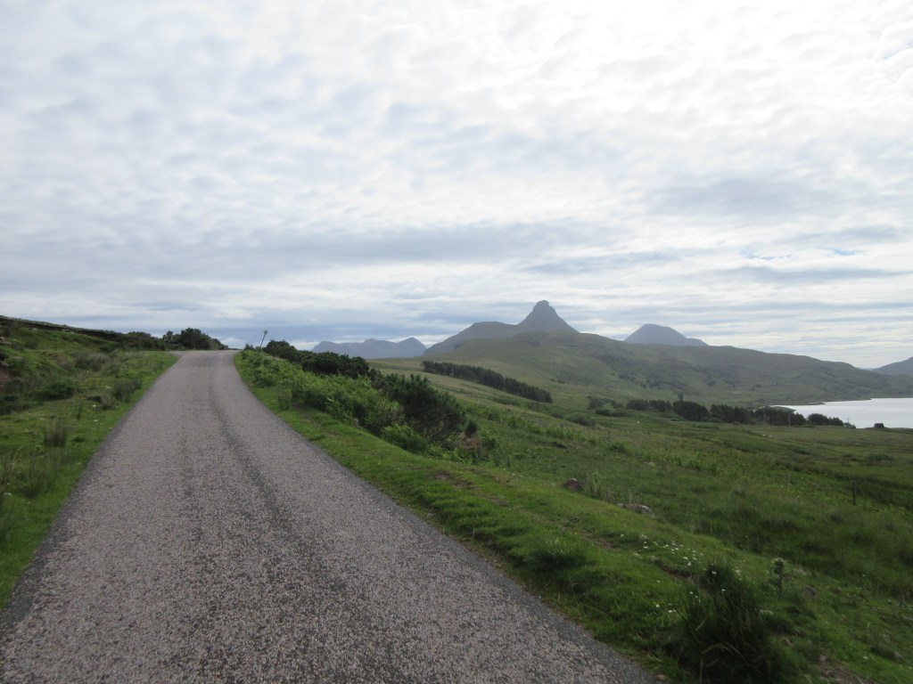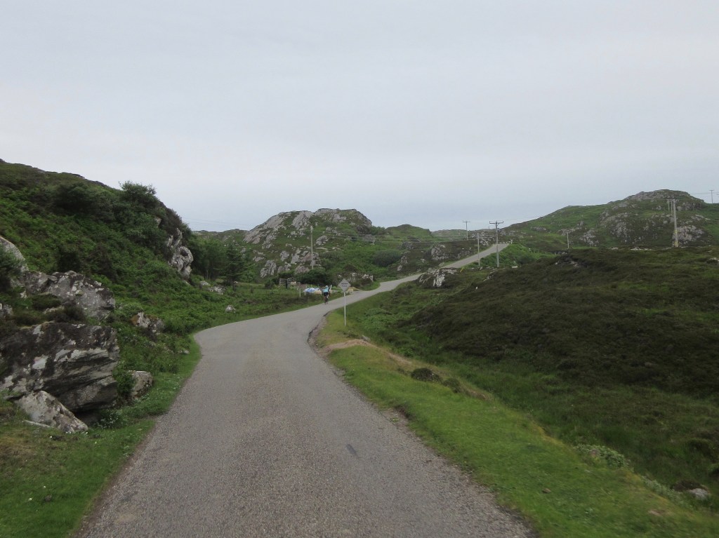 After 47 km we take a break in Lochinver. By now the sky is clouding over and it’s time to put on my jacket. The short sleeves were great while they lasted.