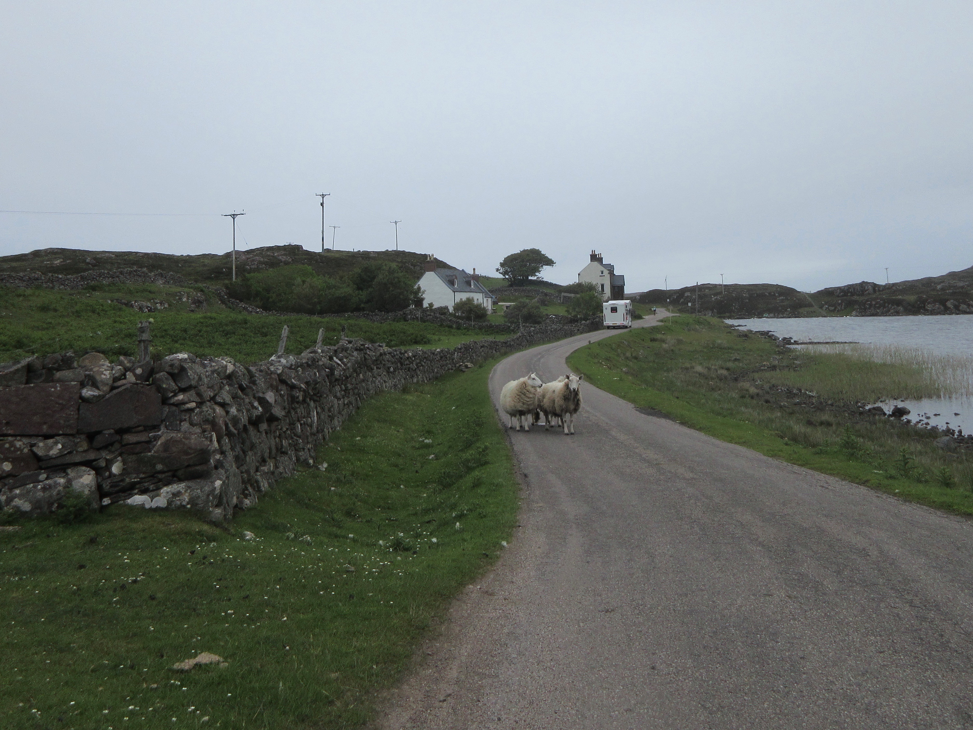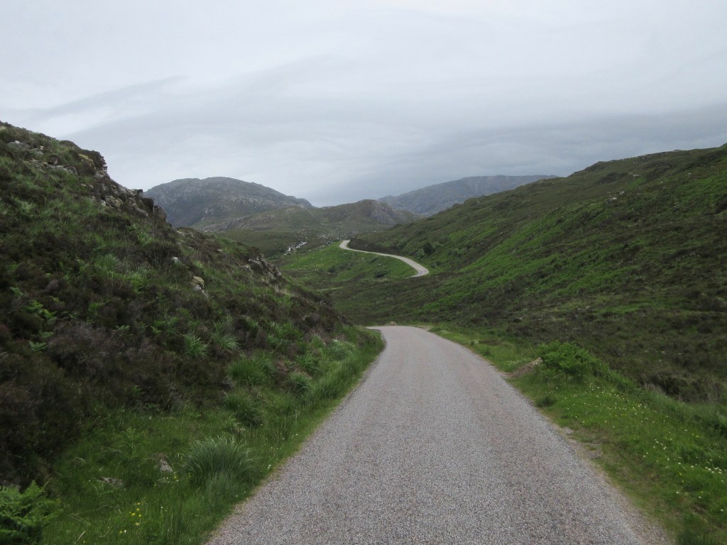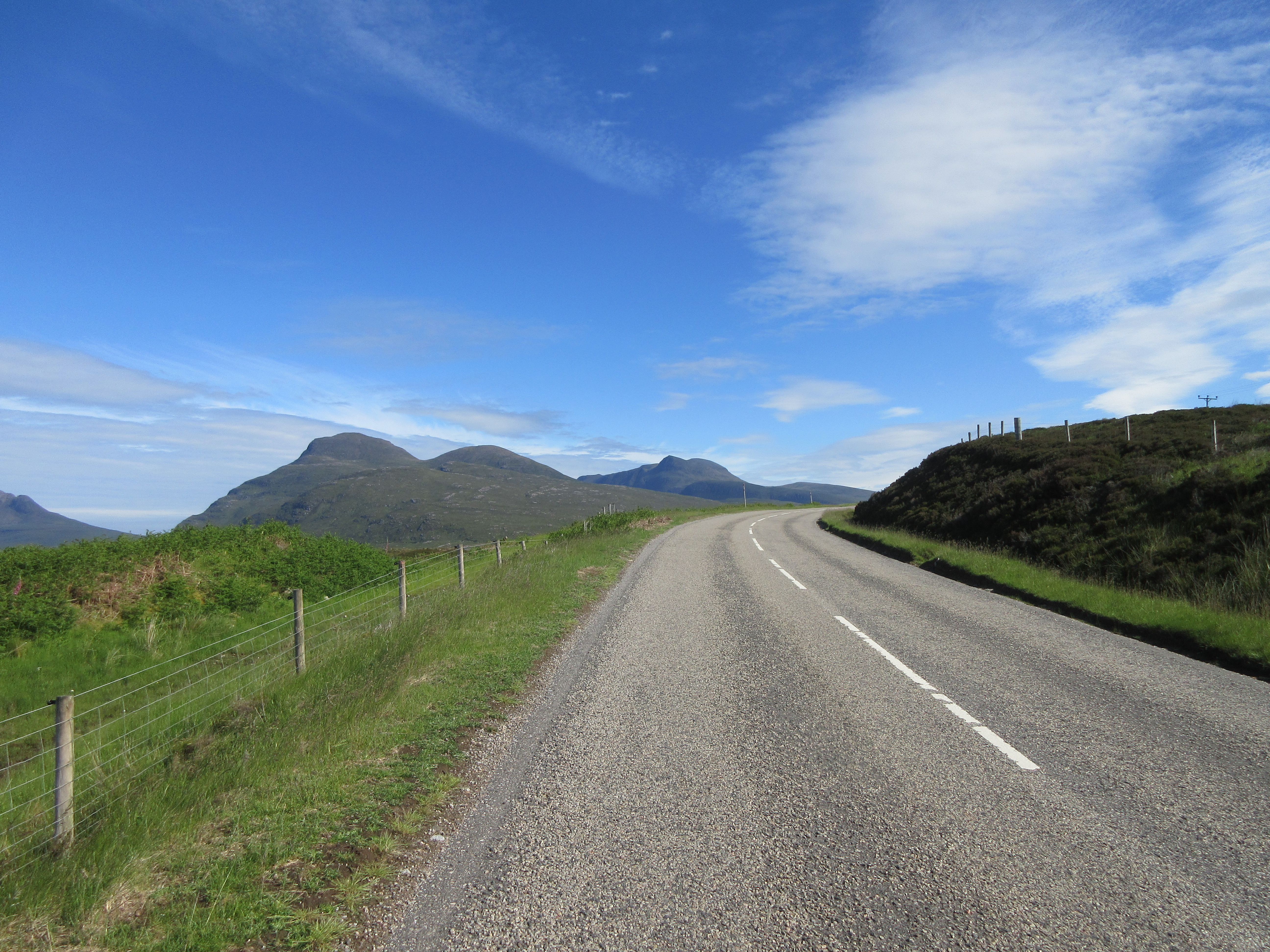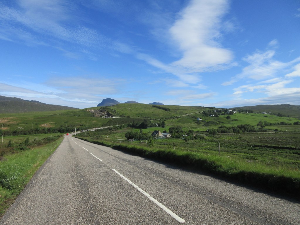 After 47 km we take a break in Lochinver. By now the sky is clouding over and it’s time to put on my jacket. The short sleeves were great while they lasted.