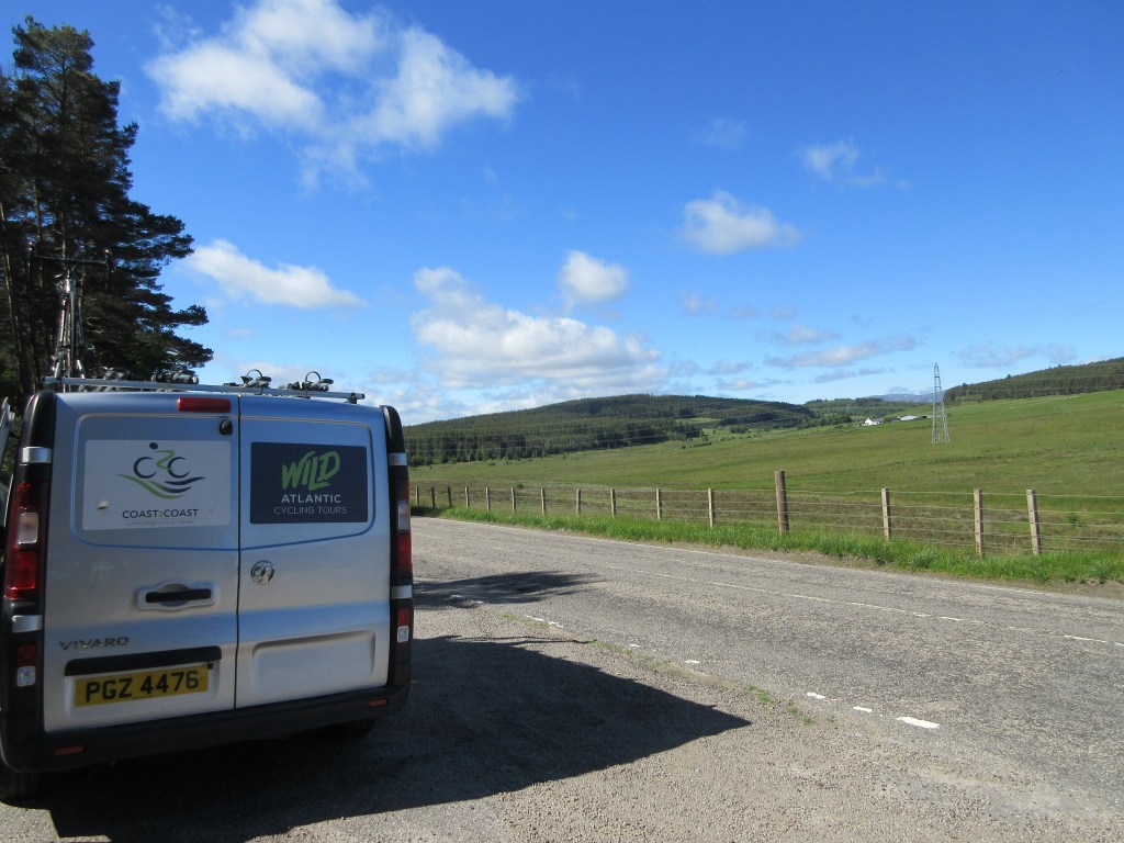 Since there isn’t a convenient place to stop for a break, Paul parks the van at the side of the road after 40 km and we get a chance to fuel up, then we continue on to Dingwall for a lunch stop at 60 km.