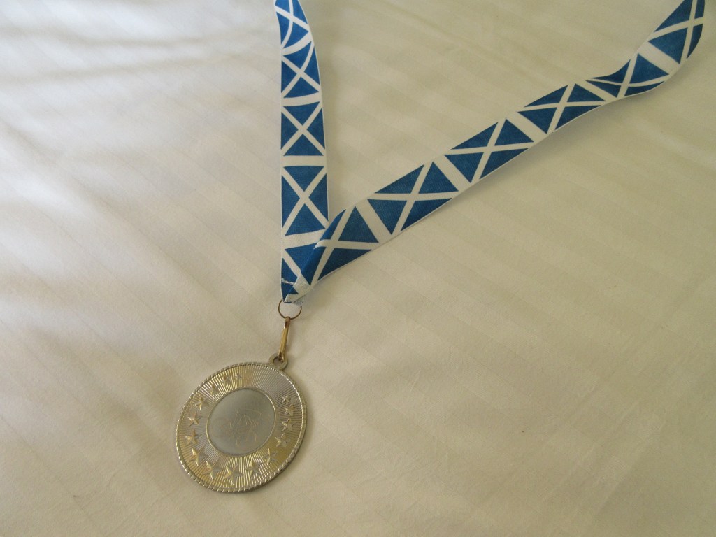 I check in at the Royal Highland Hotel at 3:30, then at 4:30 I make my way down to Johnny Foxes, the arranged meeting place for a celebratory drink on the patio. We’re each given a medal for completing the tour.